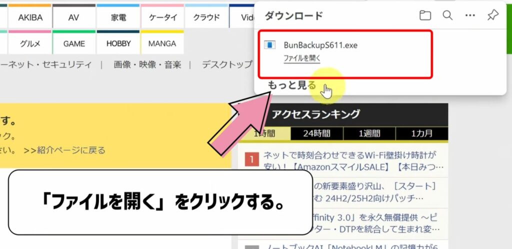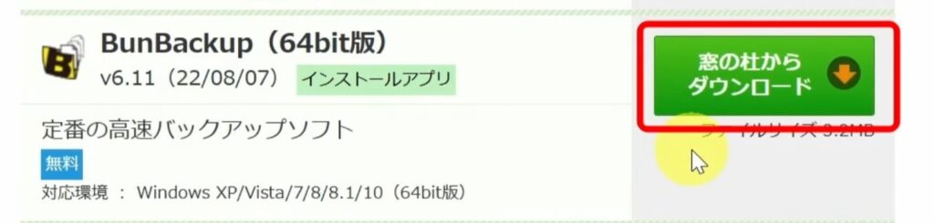 「BunBackup(64ビット版)」をクリックし、窓の森 のページからダウンロードする。