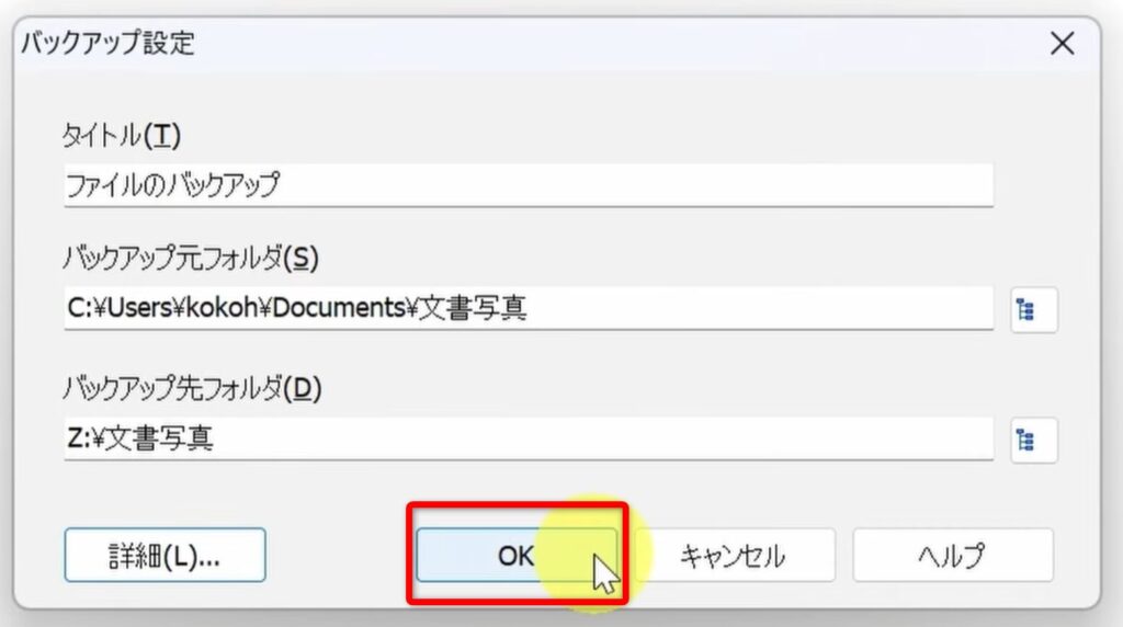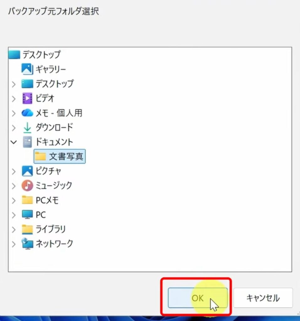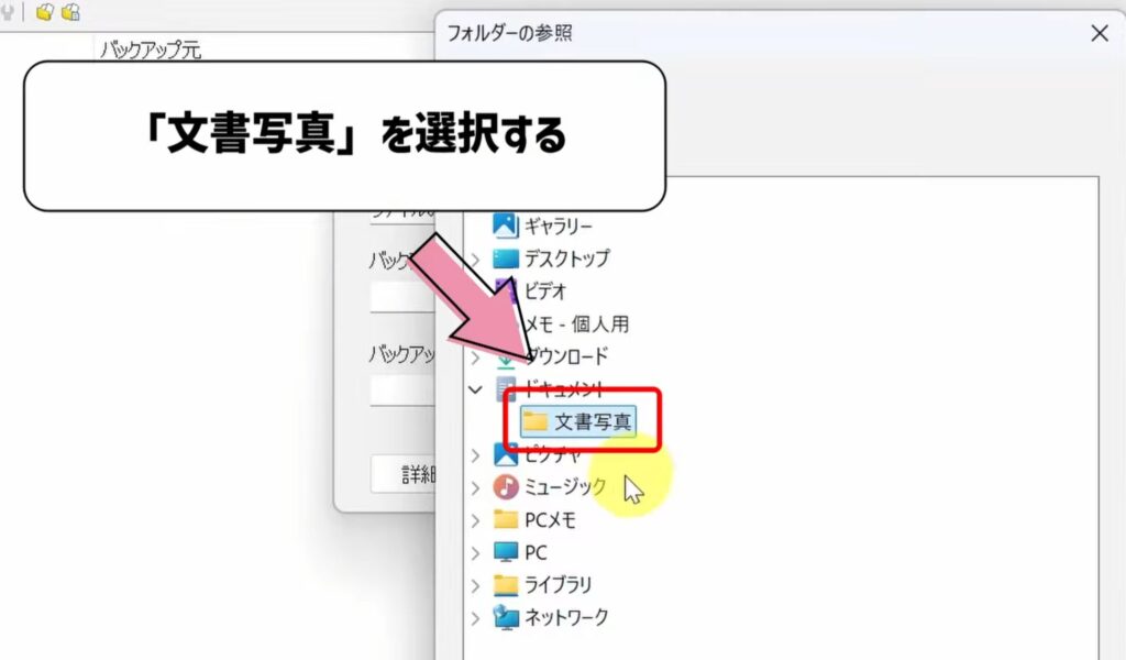 今回は「ドキュメント内の文書写真フォルダー」を指定する。
