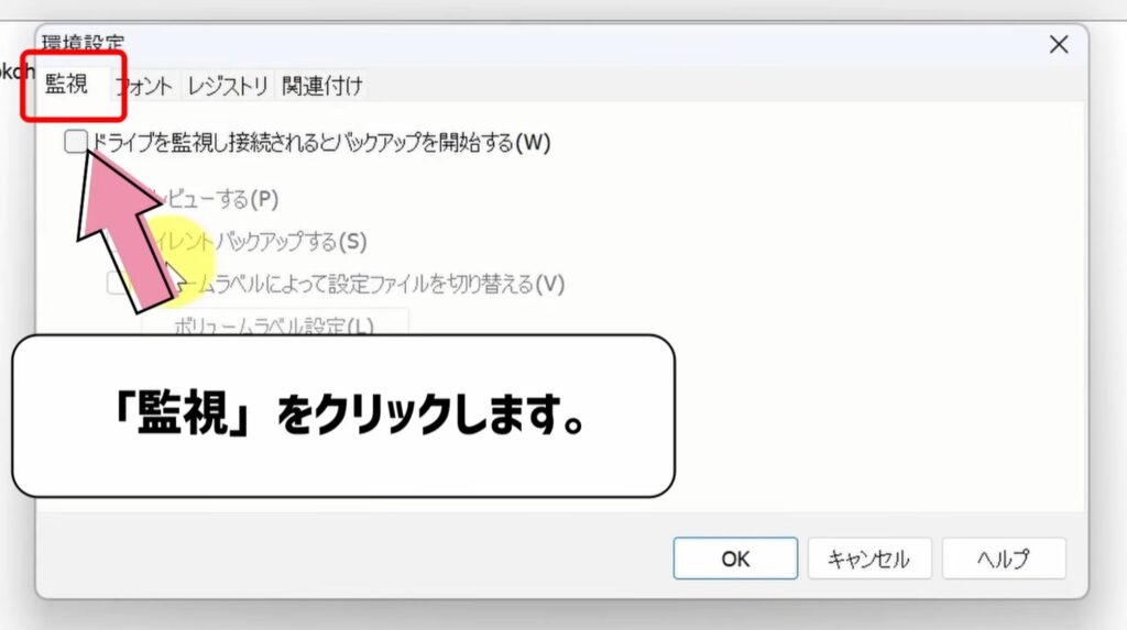 「ドライブを監視し、接続されるとバックアップを開始する」にチェックを入れる。
