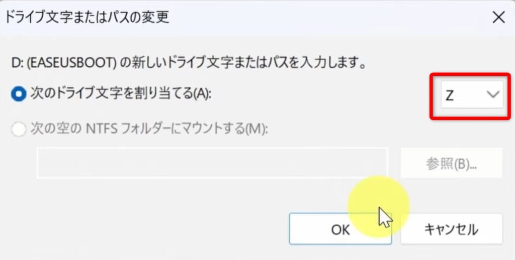 ※ドライブ文字を固定する理由は、後ほど詳しく説明します。