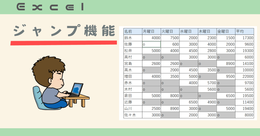 Excelのジャンプ機能!空白セルに0を入力・削除する方法