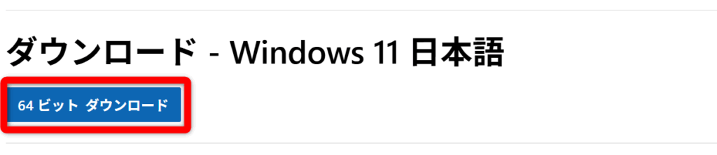 ページ内で「x64 デバイス用 Windows 11 ディスク イメージ (ISO) をダウンロードする」というセクションを探します。