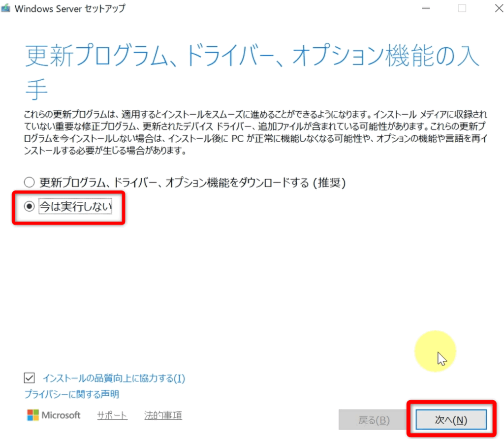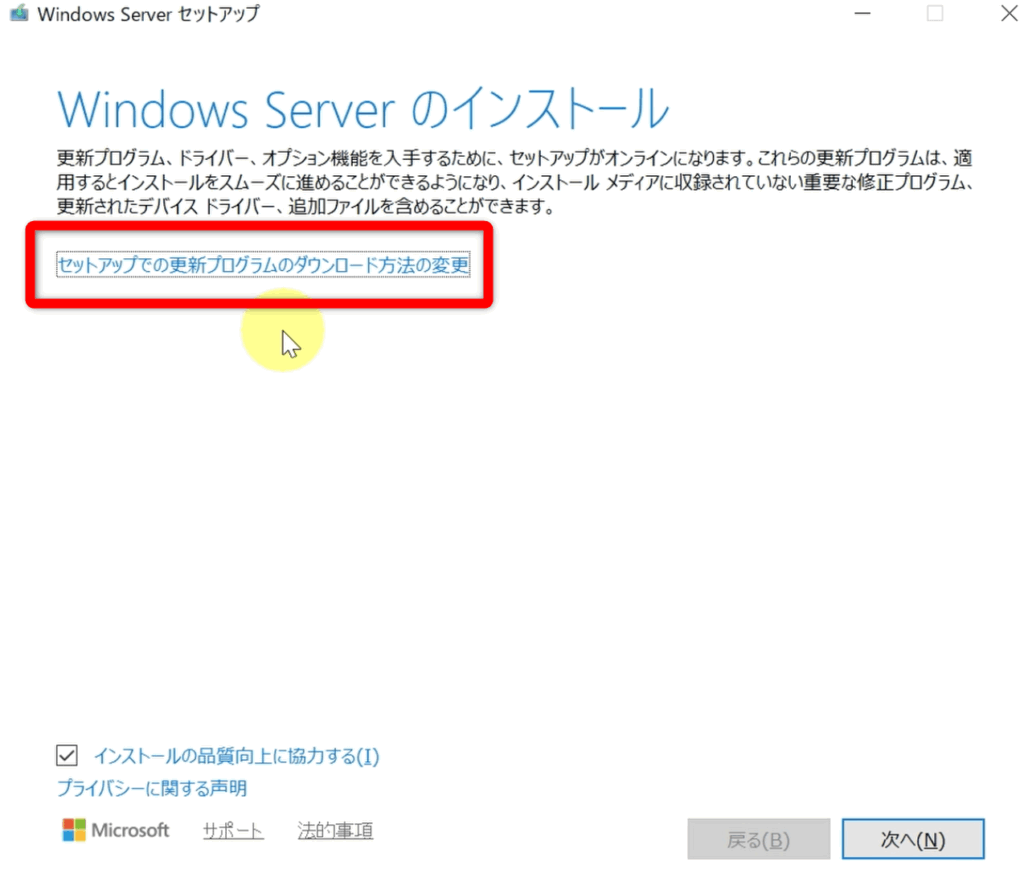 「セットアップでの更新プログラムのダウンロード方法の変更」をクリックする