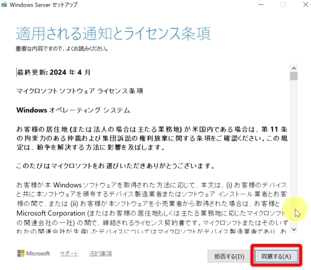 「適用される通知とライセンス条項」で「同意する」をクリックする