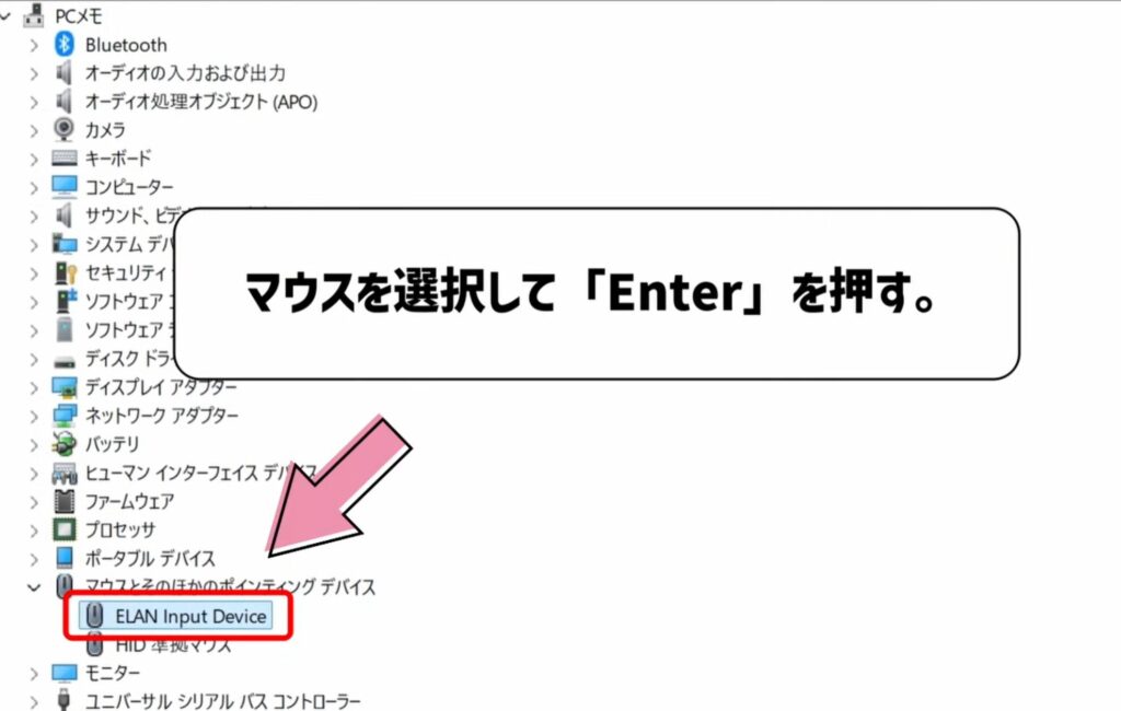 対処法① ノートパソコンのタッチパッドがオフになっている