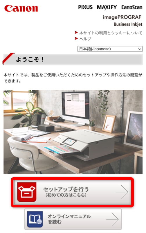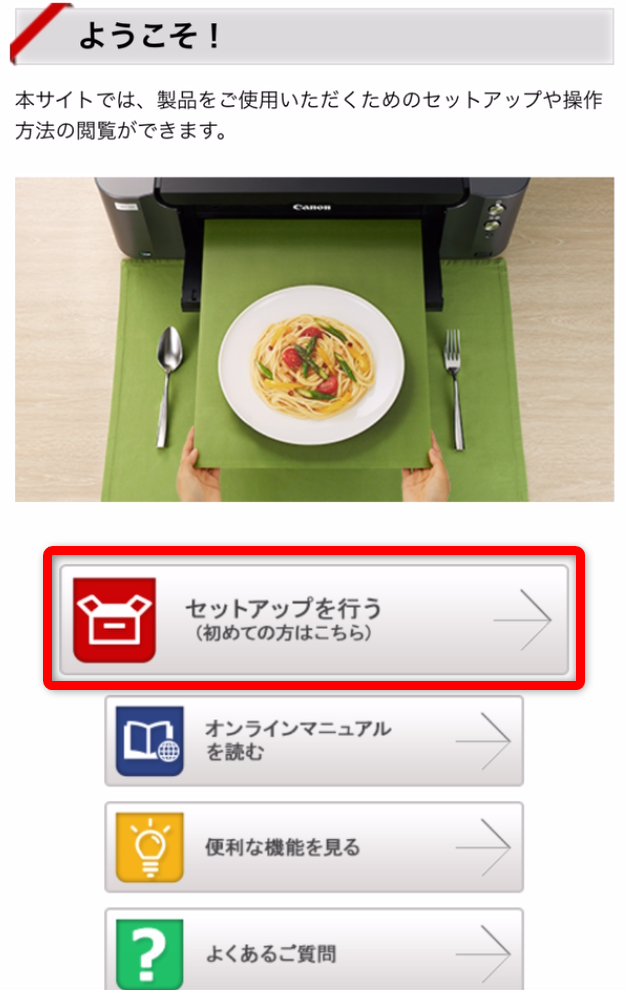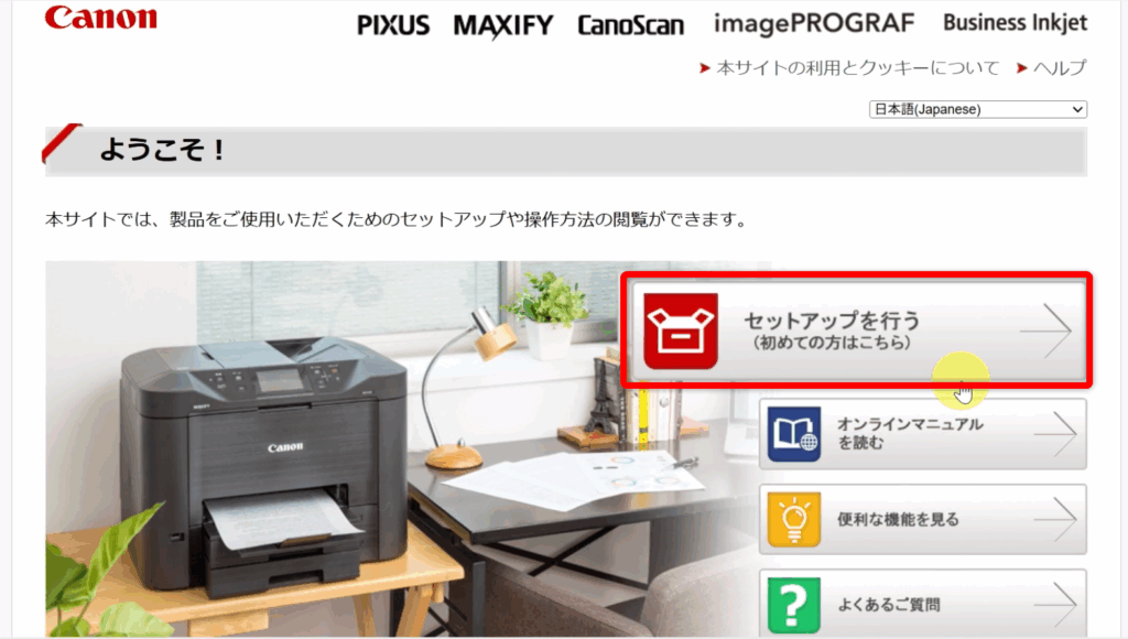Safariなどで「キャノン ようこそ」を検索する。