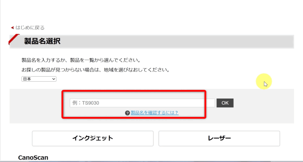 🔹 ステップ1:Canon公式サイトを開く
