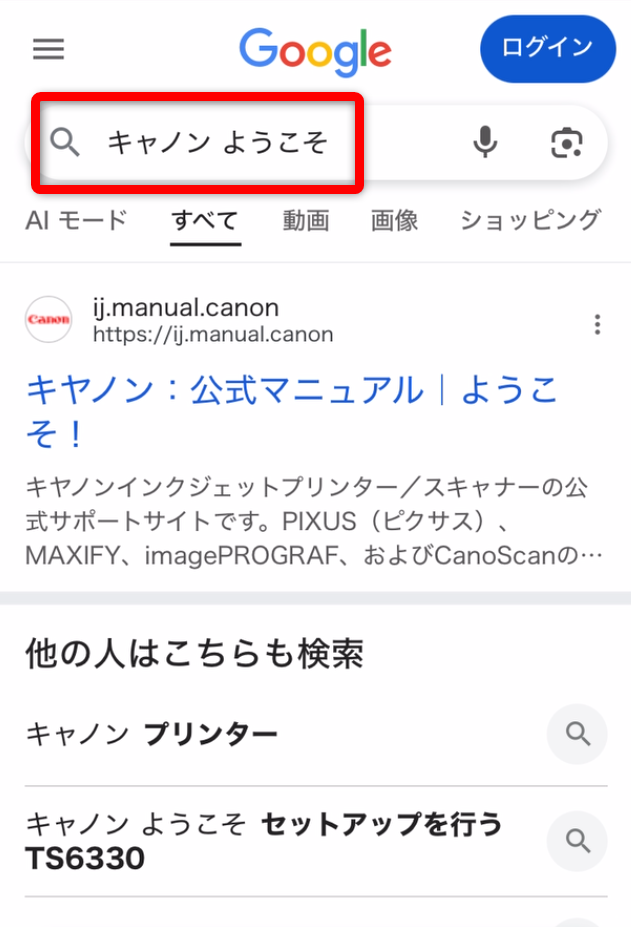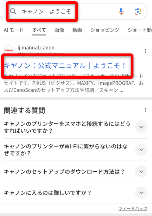 ブラウザを開き、「キャノン ようこそ」と検索します。