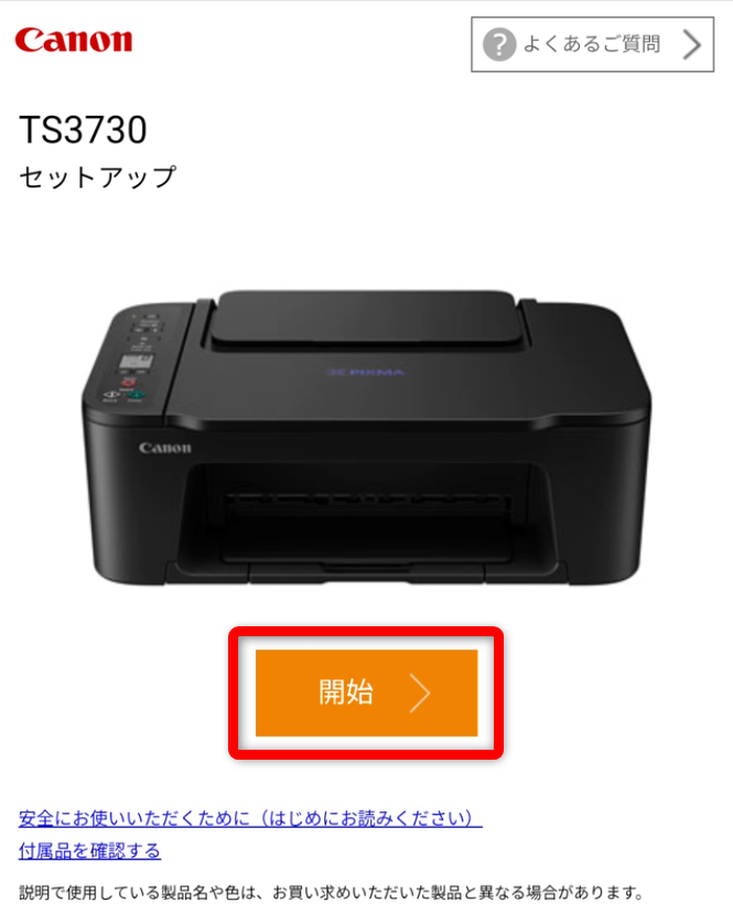 「開始」をクリックします。