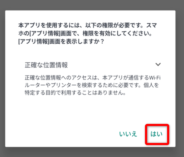 「はい」をタップする。
