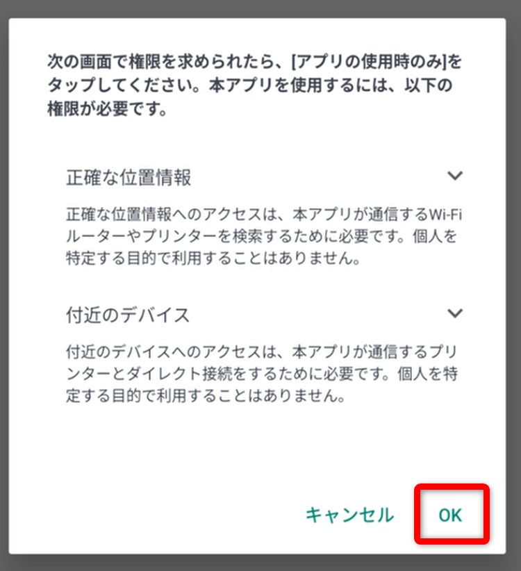「OK」をタップする。