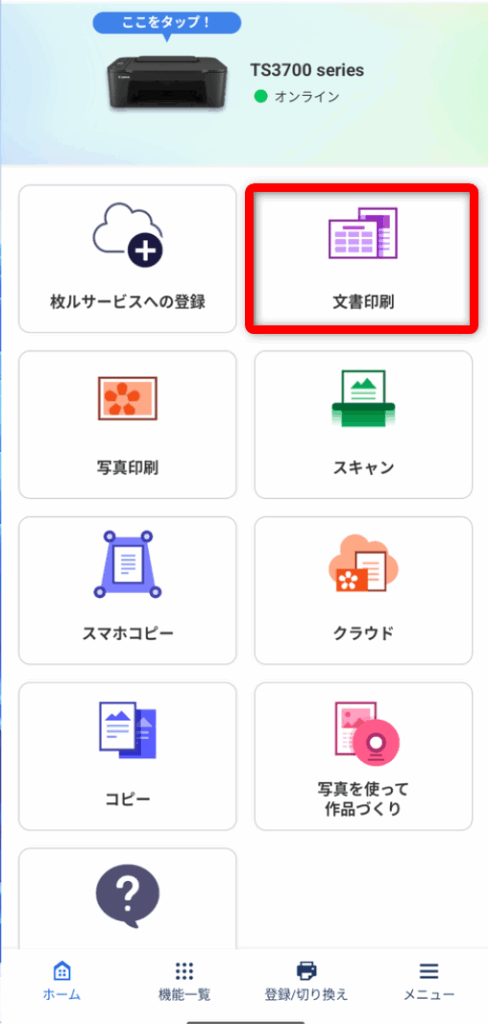 プリンタをタップする。