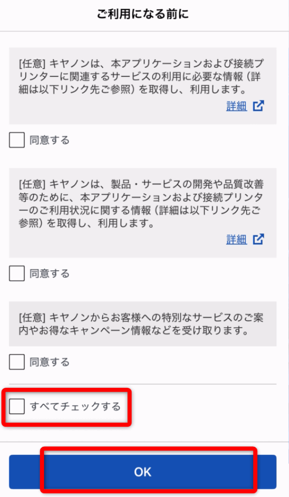 「すべてチェックする」→「OK」をタップする。