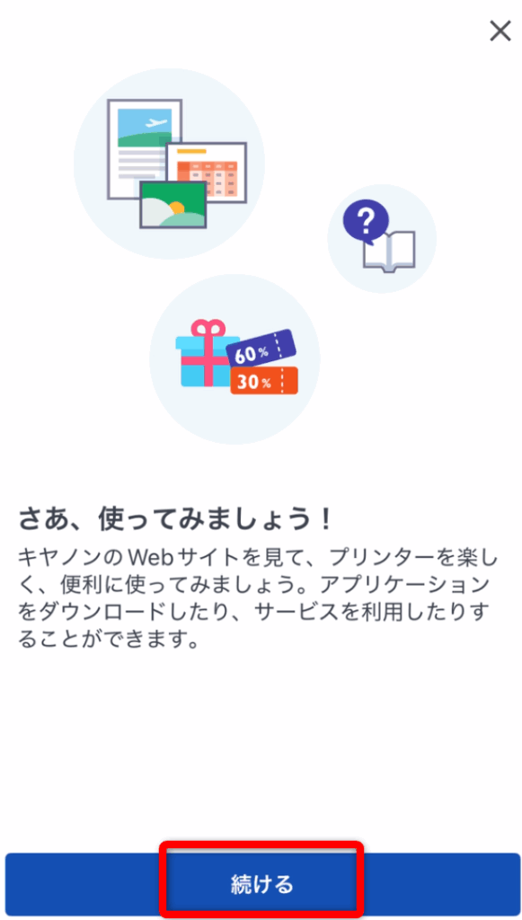 「続ける」をタップする。