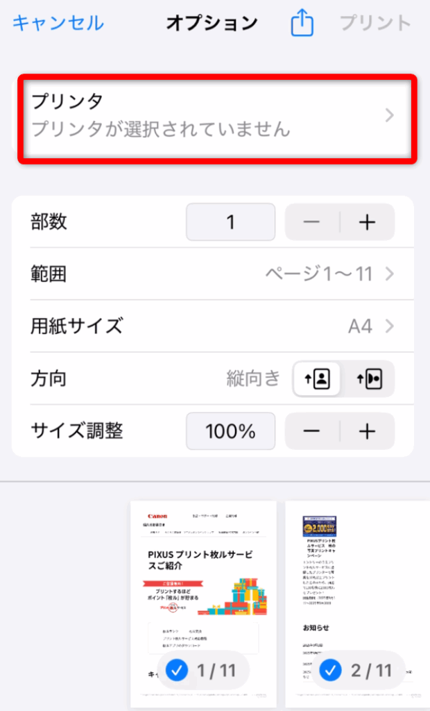 「プリント」をタップするとプリントが完了します。