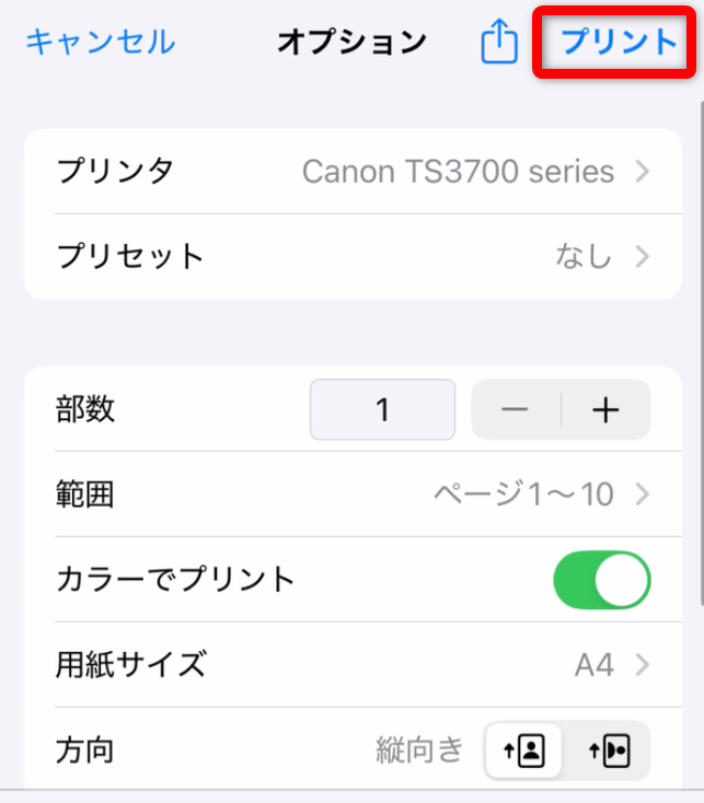 「プリント」をタップすれば、印刷完了です!