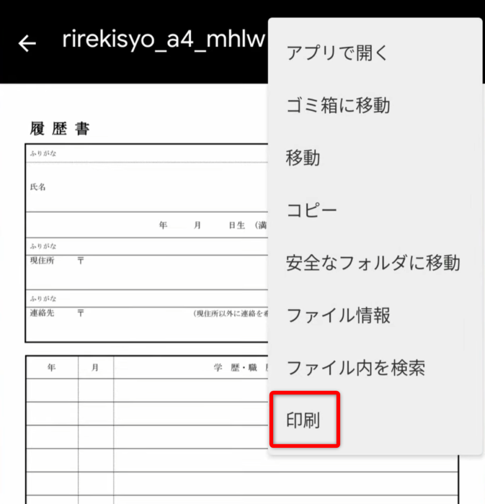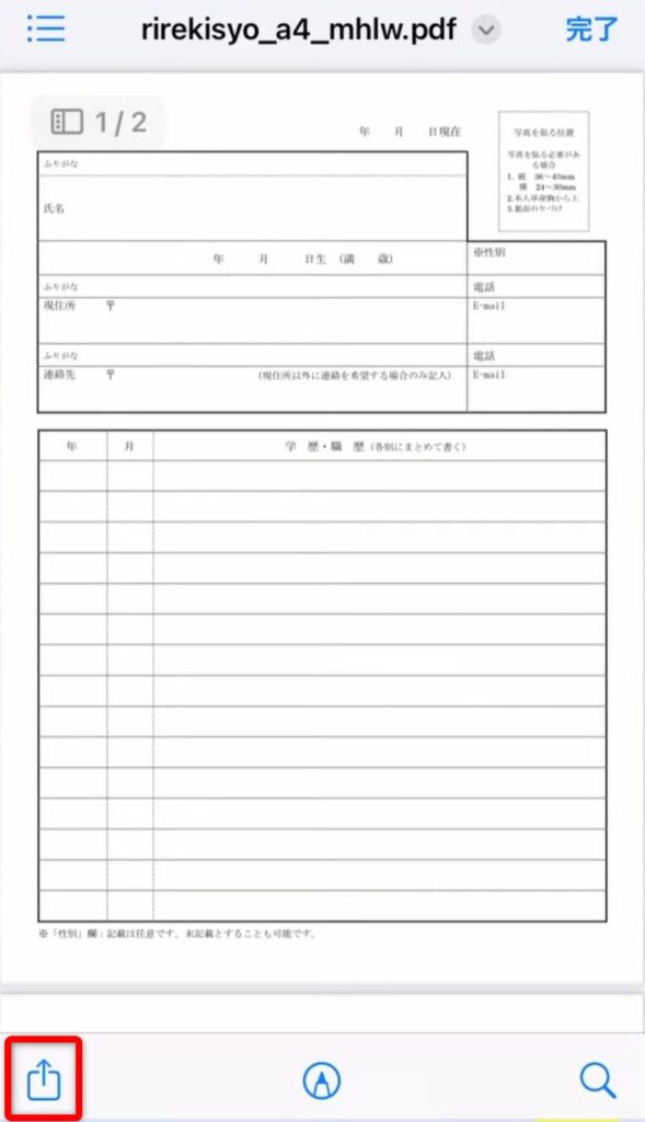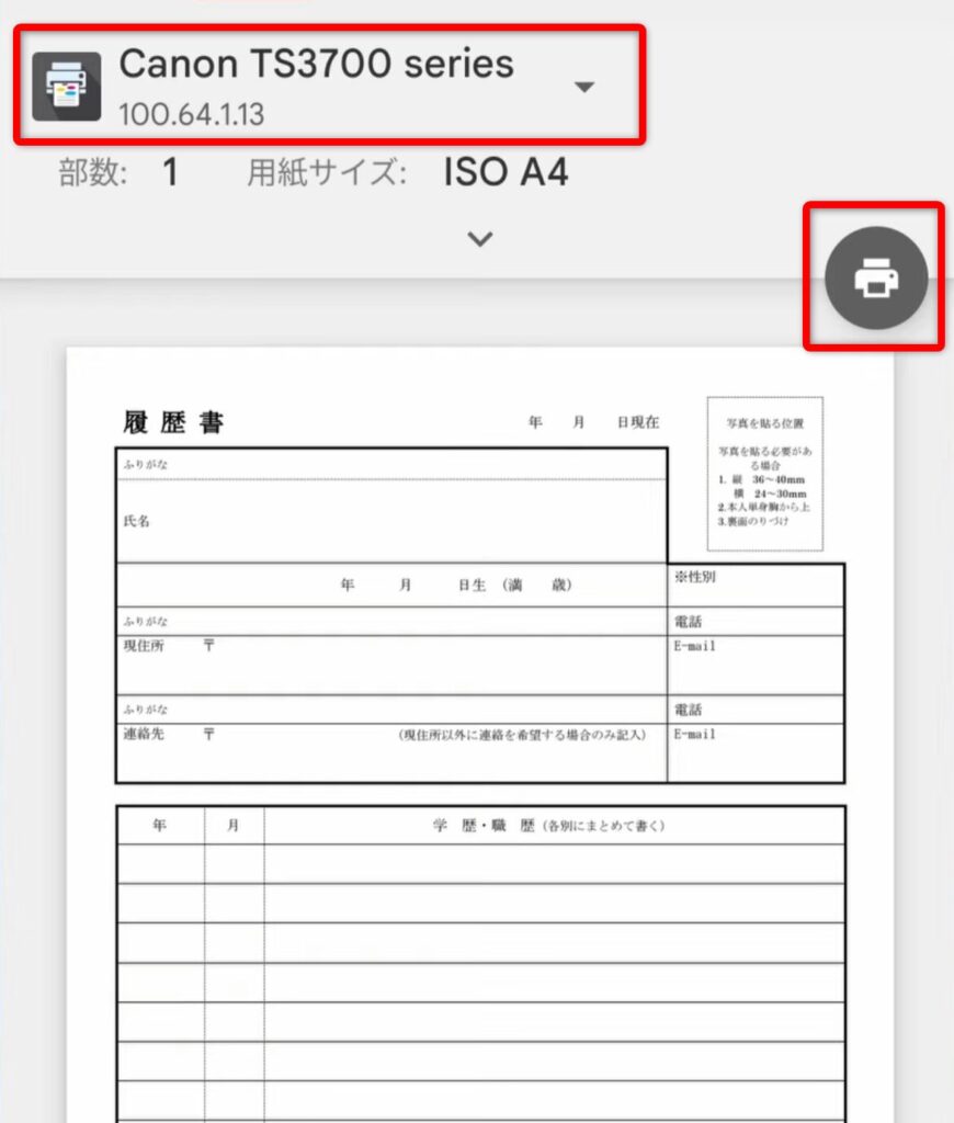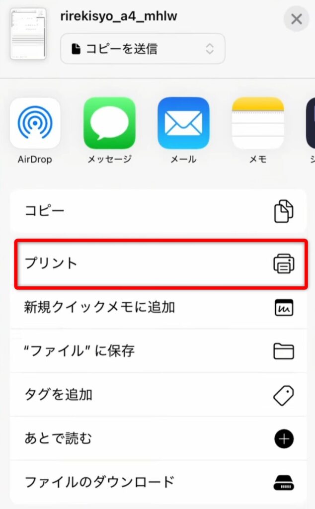 ● iPhoneで「PDF(履歴書など)」を印刷する方法