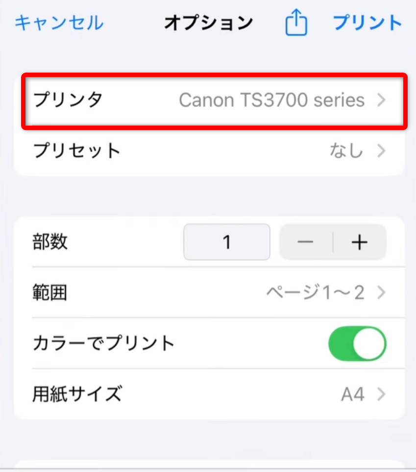 Canonのプリンターは特に、スリープ中だとAirPrintが一発で出ないことがあります。