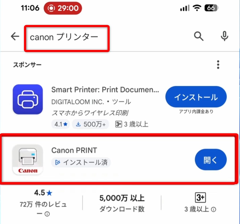 もし入っていない場合は Playストアで「Mopria」と検索してインストールします。