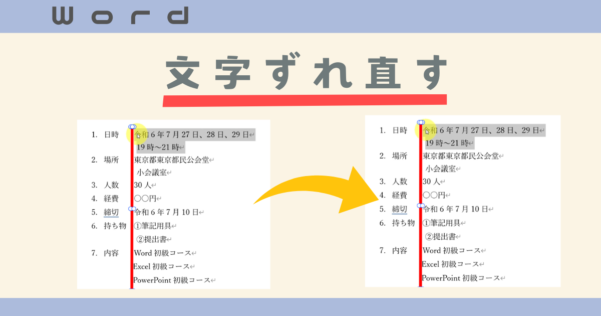 今回なんですけど、ワードで文字の位置がずれてしまったときに揃える方法について紹介していきます。
